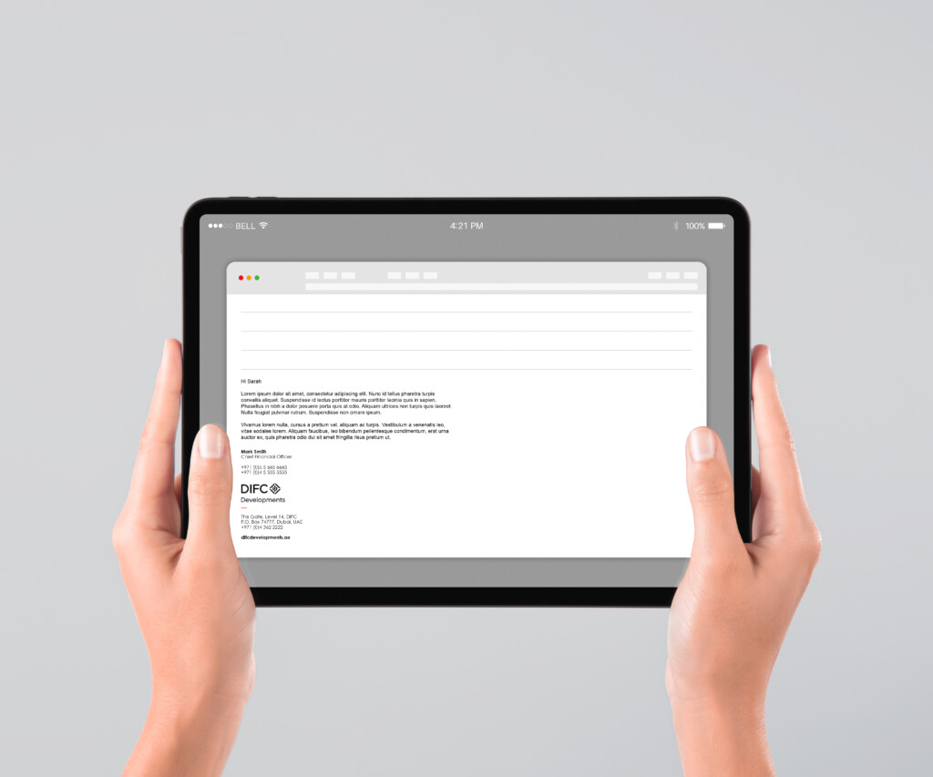 It is important to use final artwork files to create a complete graphic treatment package for branded environments for DIFC Developments.