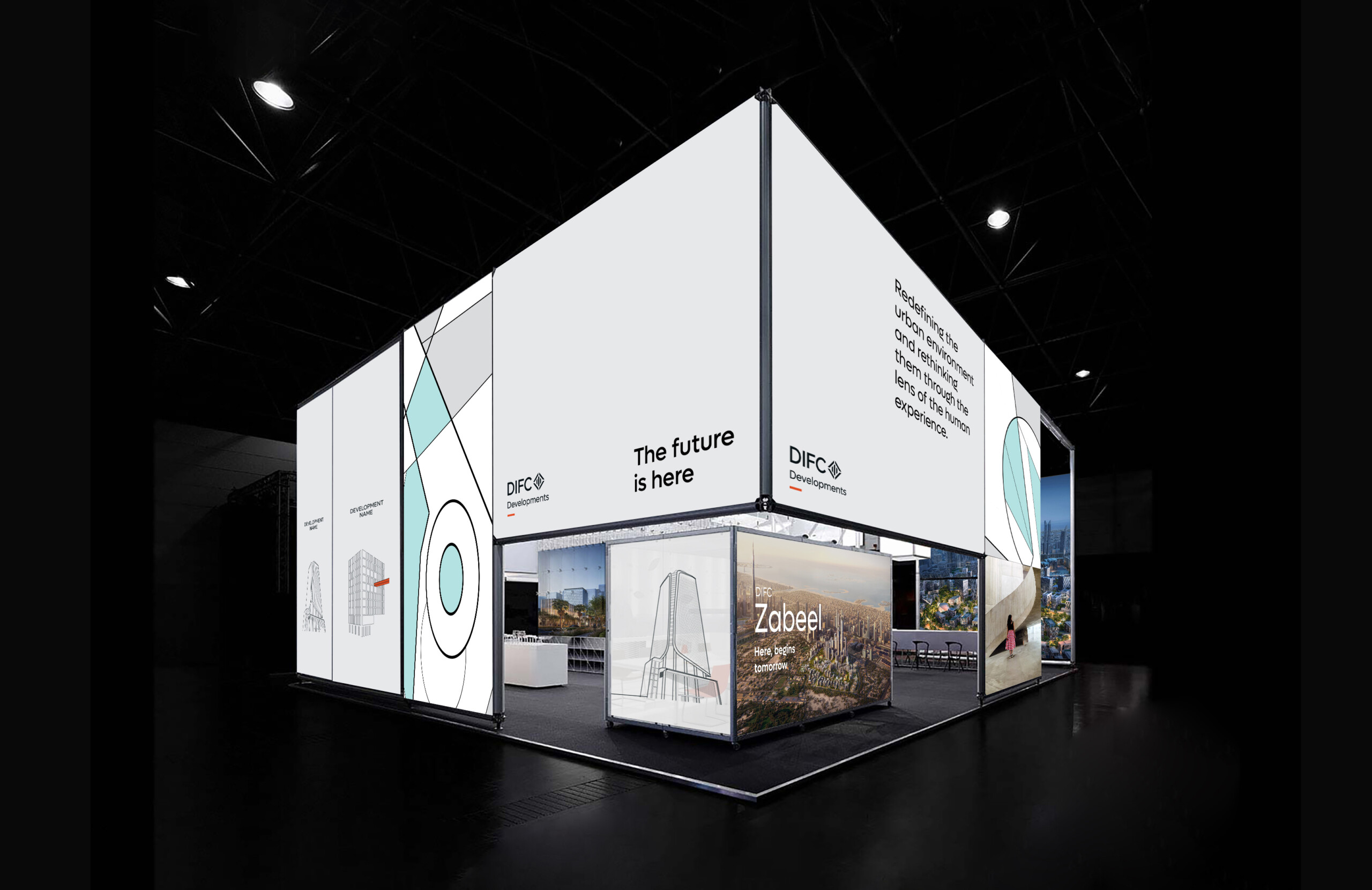 The following is a notional example of how a potential branded environment / exhibition space / sales centre could function in terms of both architectural form and graphic treatment.