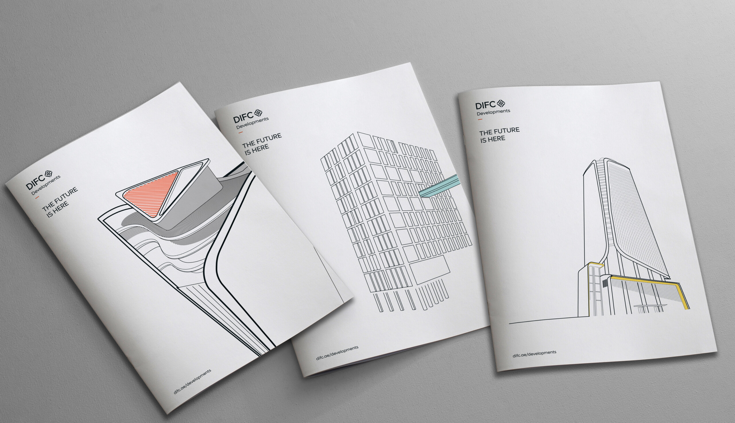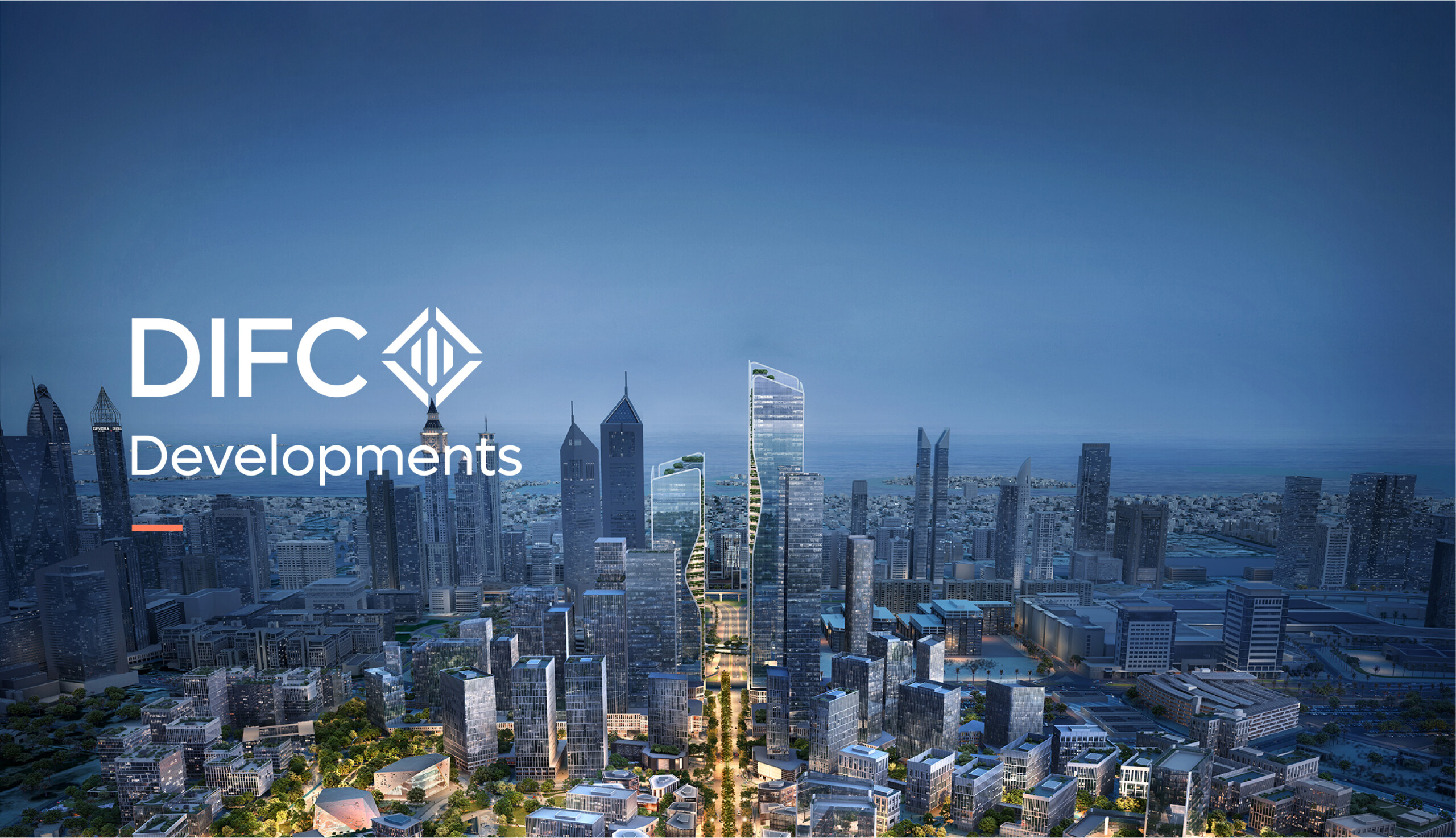The typographic wordmark builds upon the DIFC brand – utilising its own unique lockup, by featuring the Developments word mark underneath DIFC.